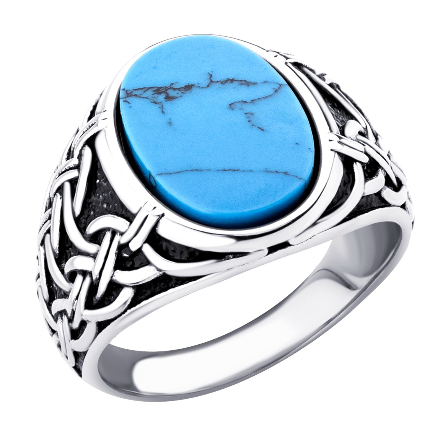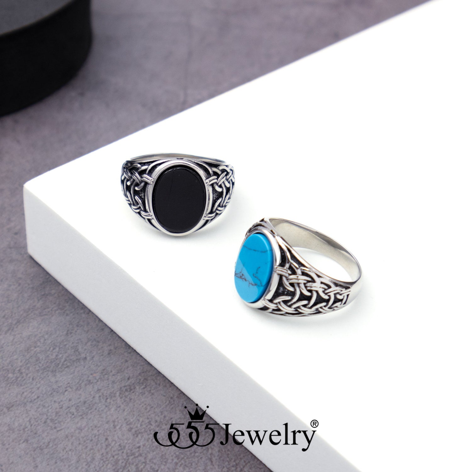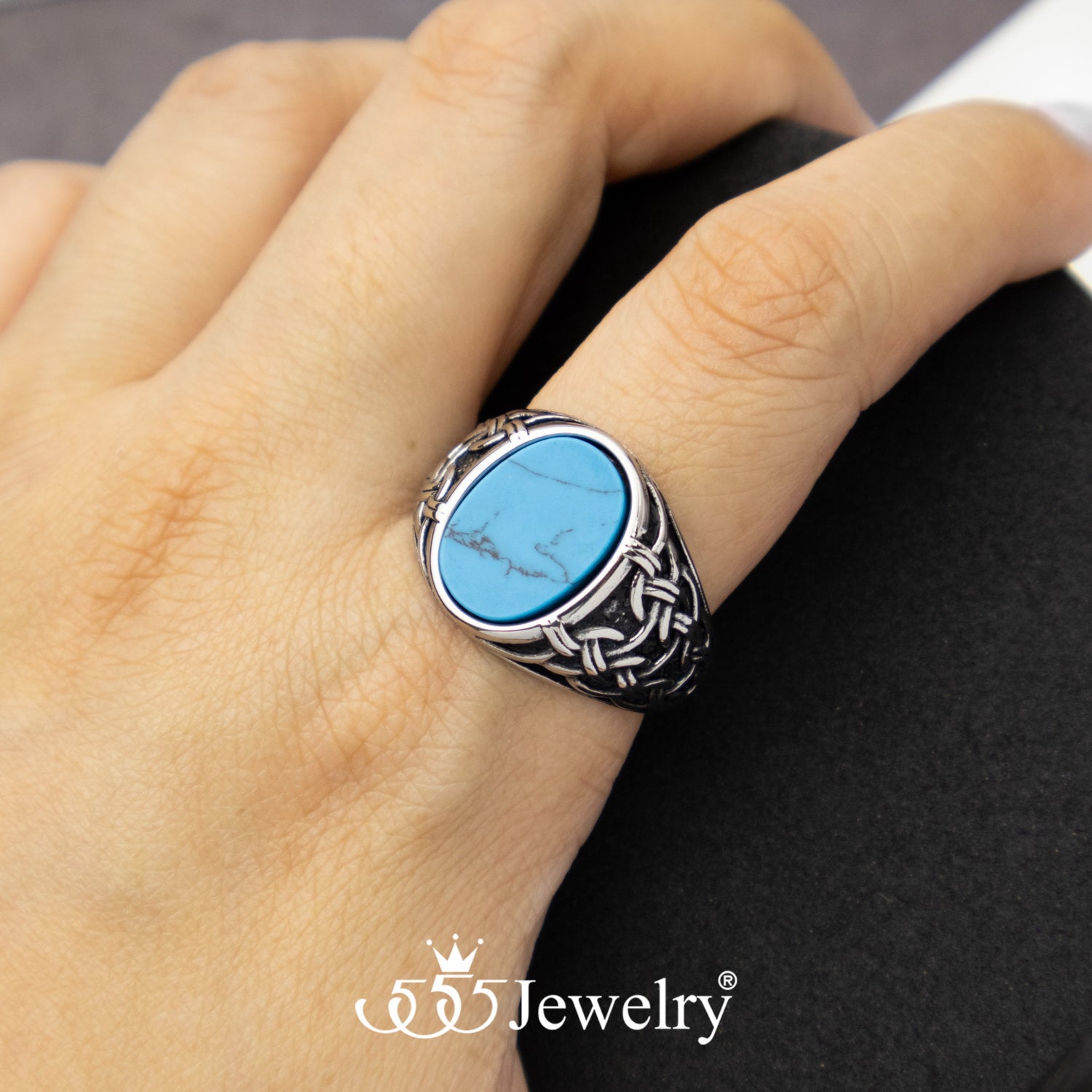 แหวนเรียบ เท่ ประดับ Turquoise/Black ดีไซน์แหวนหัวโต หน้าแหวนกว้างประมาณ 11 มม