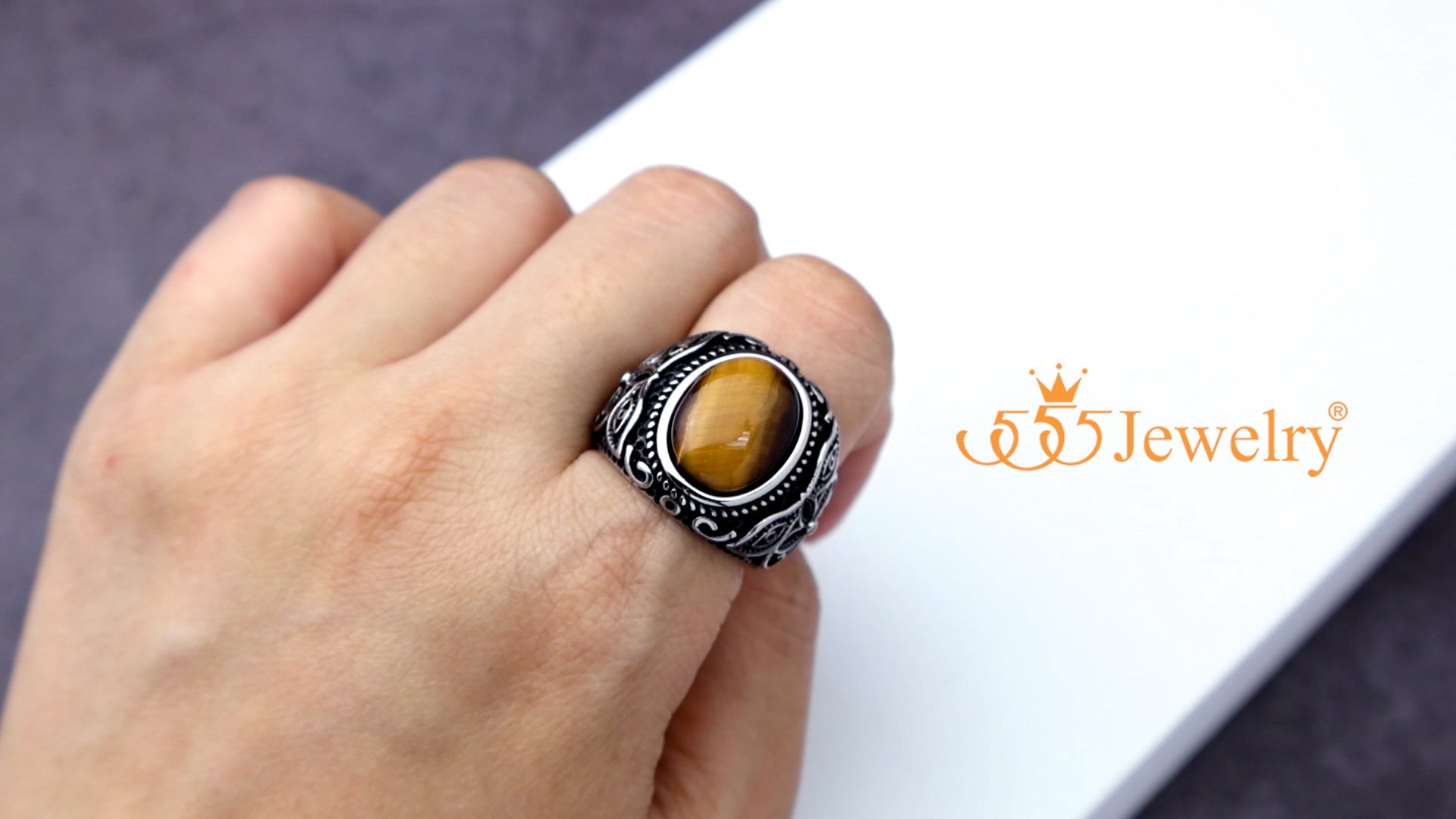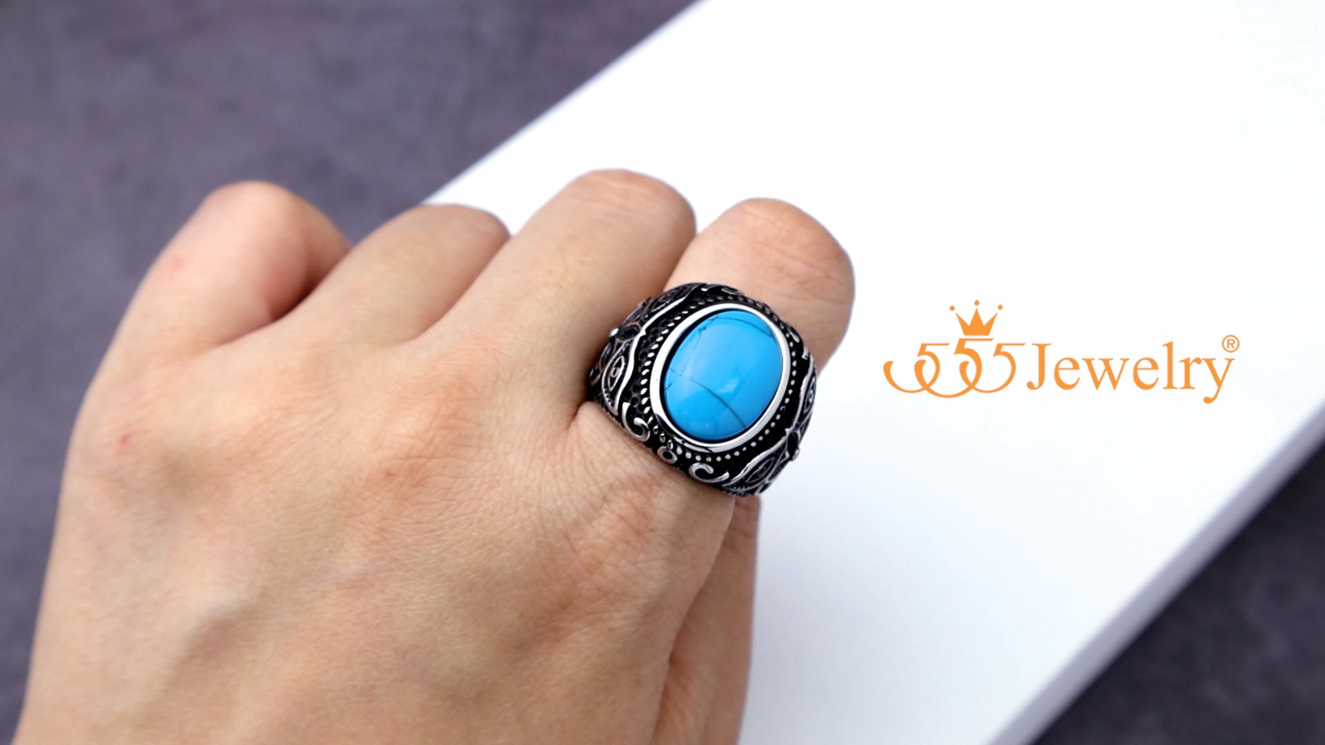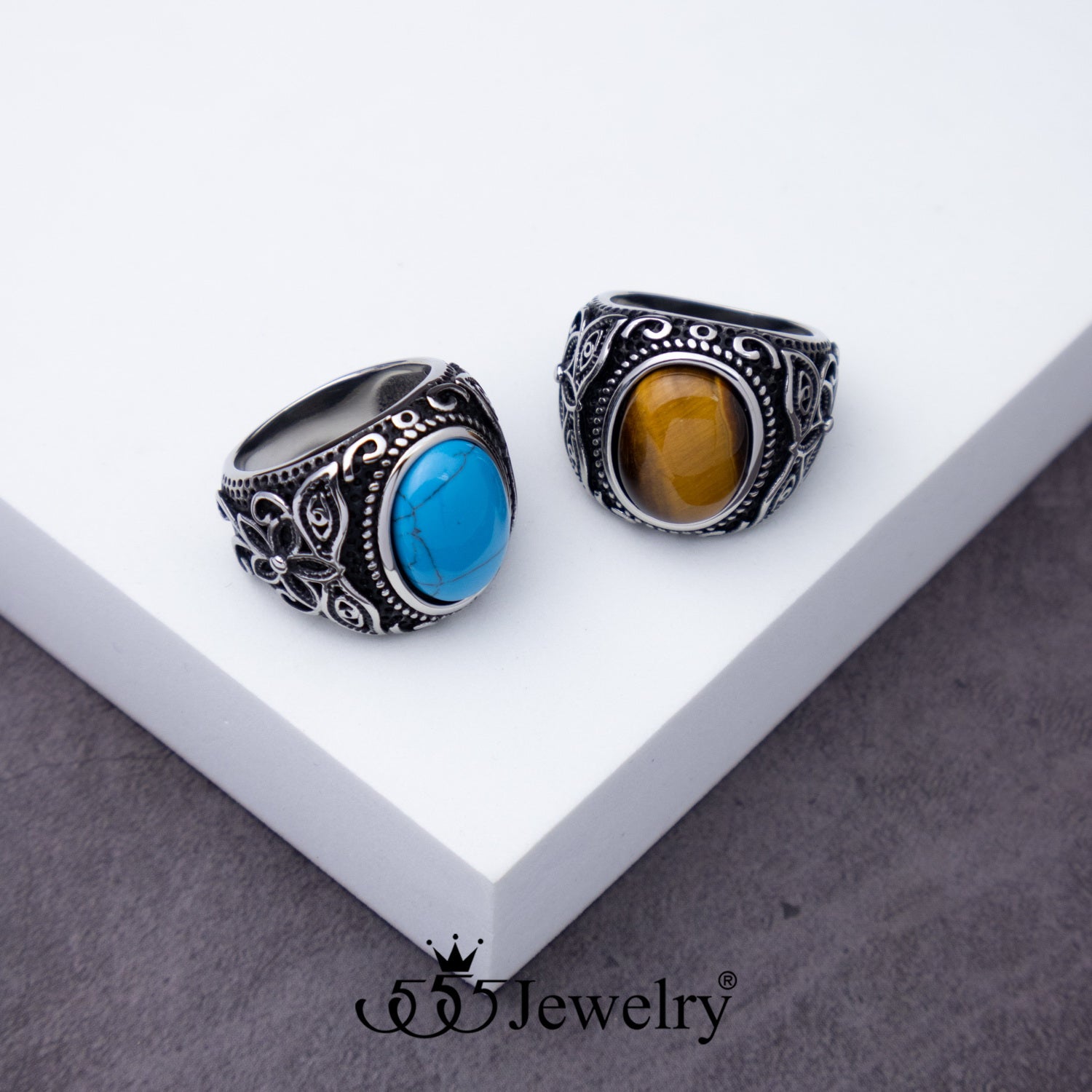 แหวนเรียบ เท่ ประดับ Turquoise/Tiger Eye ดีไซน์แหวนหัวโต หน้าแหวนกว้างประมาณ 13 มม