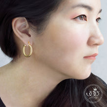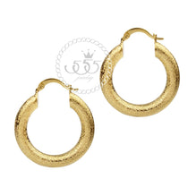ต่างหูห่วงแฟชั่น ดีไซน์เรียบเก๋ สวมใส่ได้ทุกวัน ผิวทรายระยิบ สวยงาม ขนาดเส้นผ่านูศนย์กลางประมาณ 3.0 ซม. เนื้องานทองเหลือง แข็งแรงทนทาน สีสวยทน