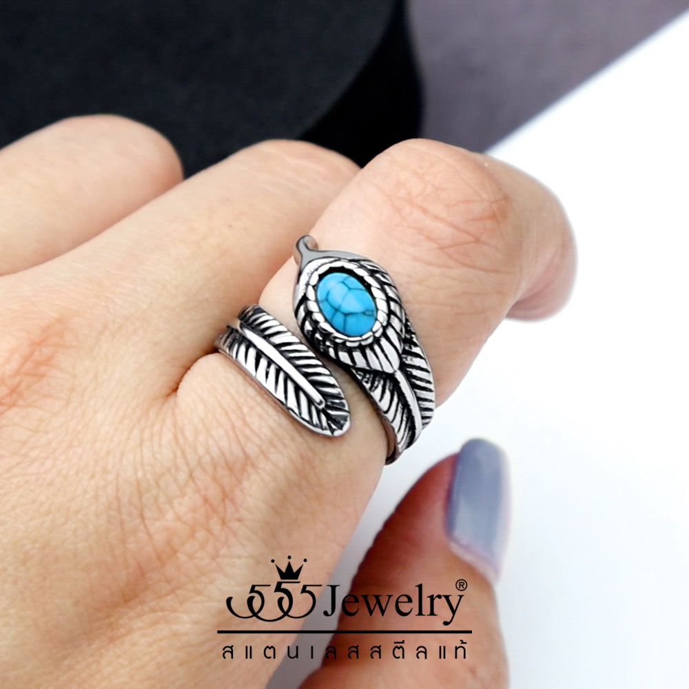 แหวนเรียบ เท่ ประดับ Turquoise/Black ดีไซน์แหวนหัวโต หน้าแหวนกว้างประมาณ 15 มม