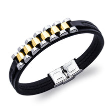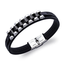 กำไลข้อมือหนังสำหรับผู้ชาย ประดับด้วยสแตนเลส สตีล Metal Strap รุ่น MNC-BR602 - กำไลข้อมือแฟชั่น