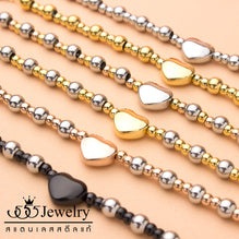 สร้อยข้อมือสแตนเลสสตีล แท้ แฟชั่น แบบลูกปัด โลหะ รูปหัวใจ รุ่น MNC-BR686