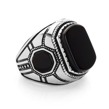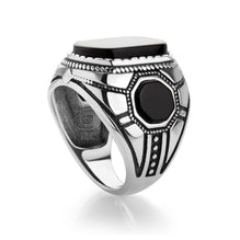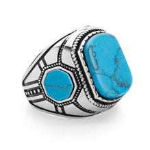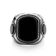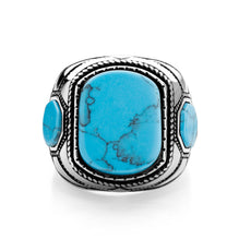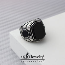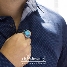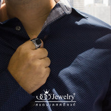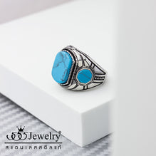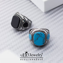 แหวนแฟชั่นสแตนเลส สำหรับผู้ชาย ดีไซน์เท่คลาสสิค ประดับหิน Turquoise / Black Onyx รุ่น MNC-R930