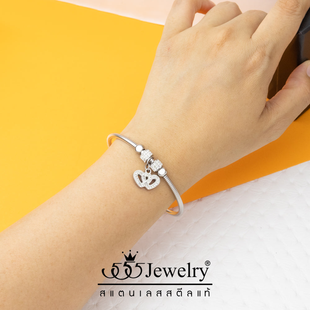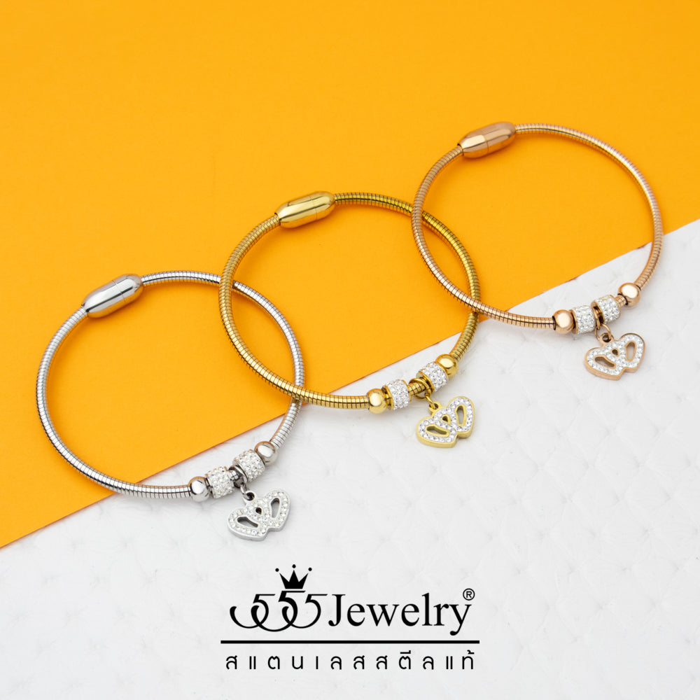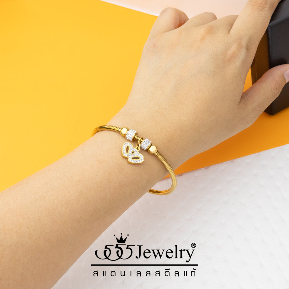 กำไลข้อมือสแตนเลส สตีล สวยๆสำหรับผู้หญิง ห้อยด้วยจี้รูปหัวใจ ประดับด้วยเพชร CZ ดีไซน์สวย รุ่น MNC-BG530