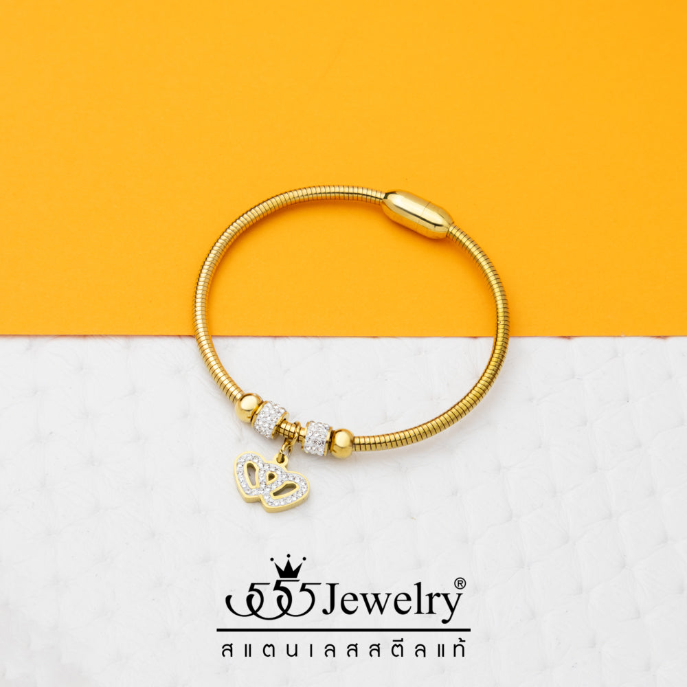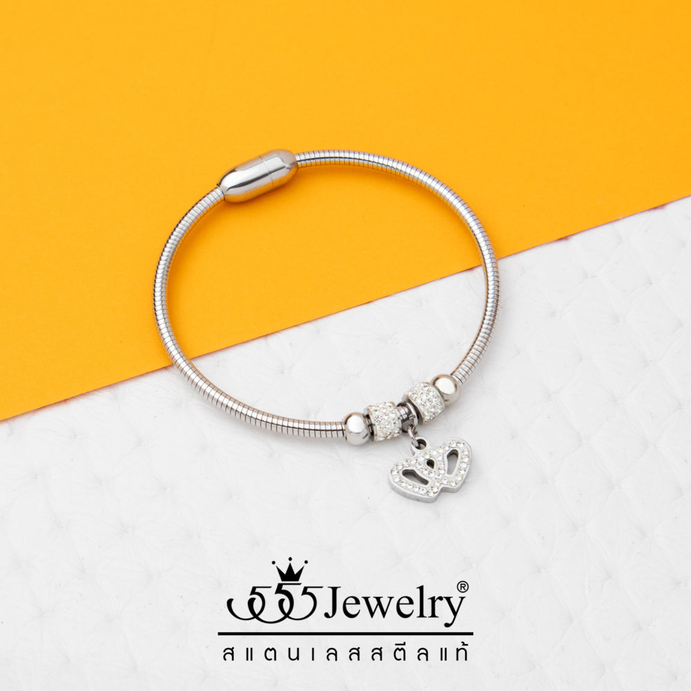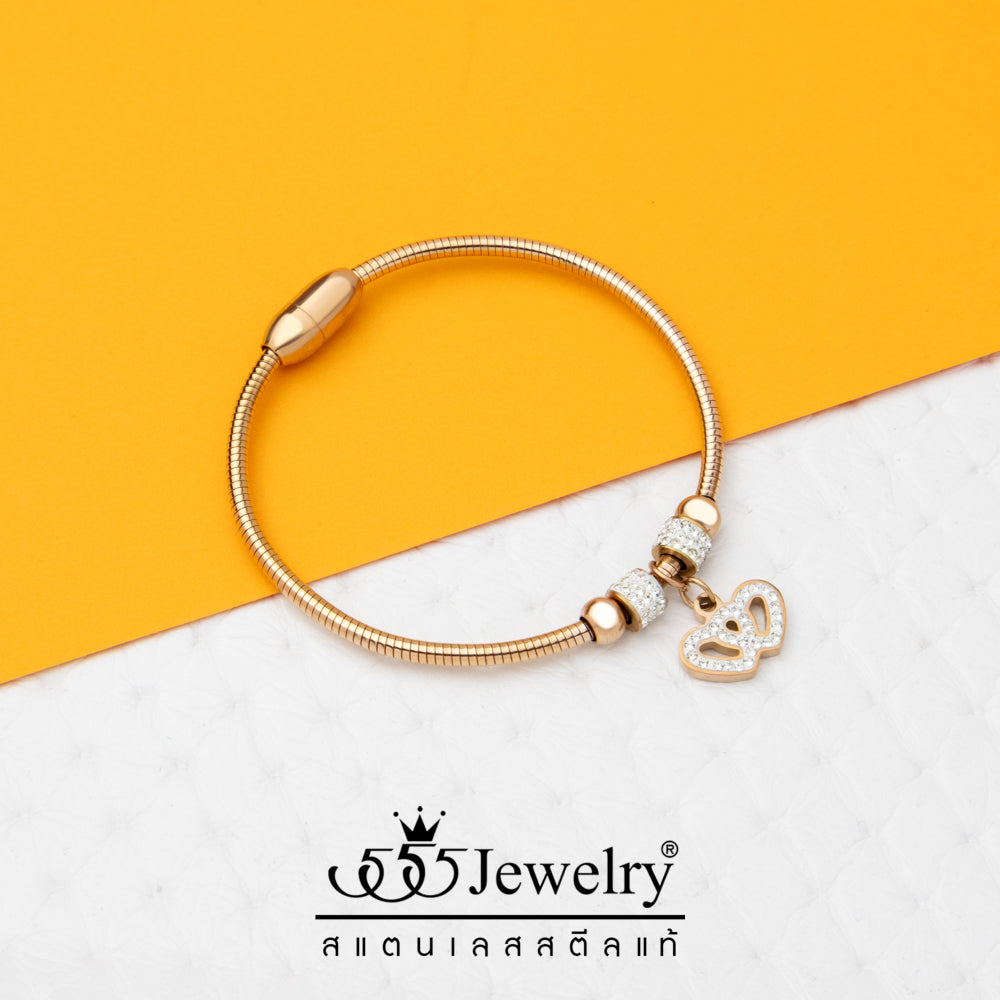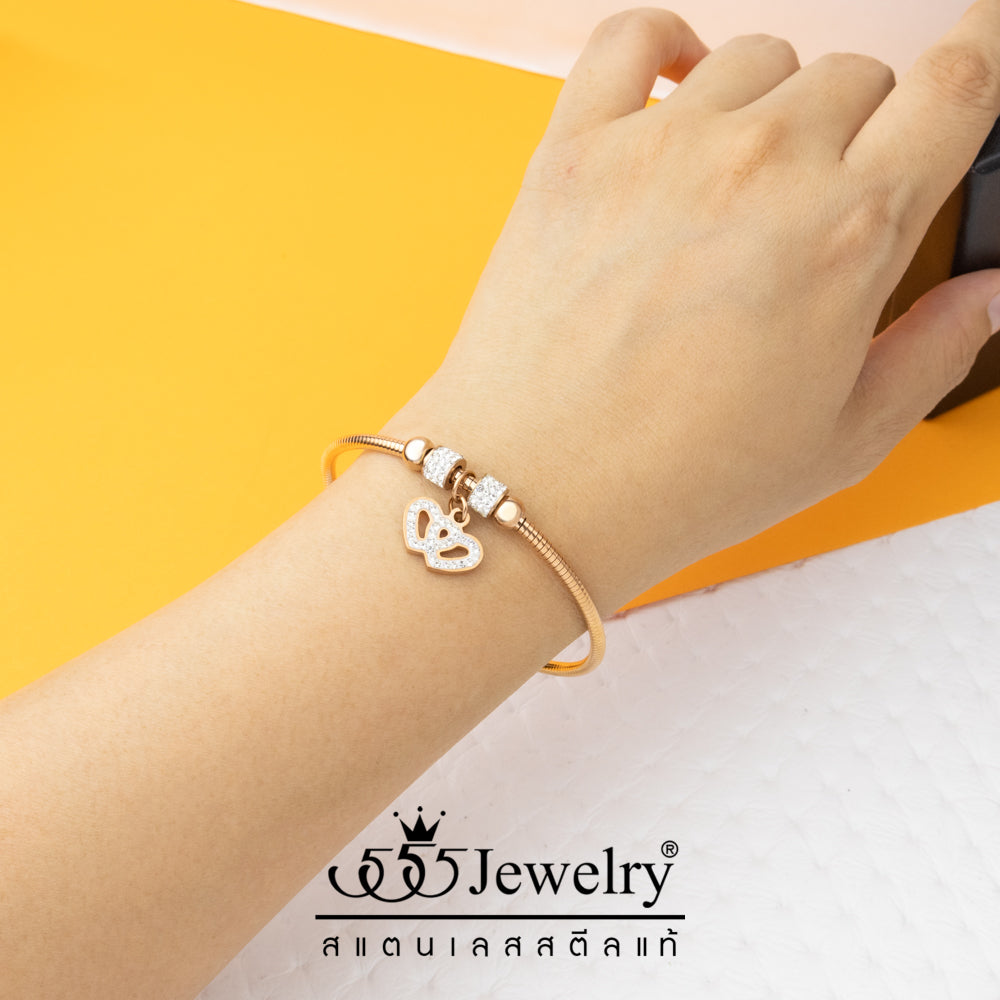 กำไลข้อมือสแตนเลส สตีล สวยๆสำหรับผู้หญิง ห้อยด้วยจี้รูปหัวใจ ประดับด้วยเพชร CZ ดีไซน์สวย รุ่น MNC-BG530