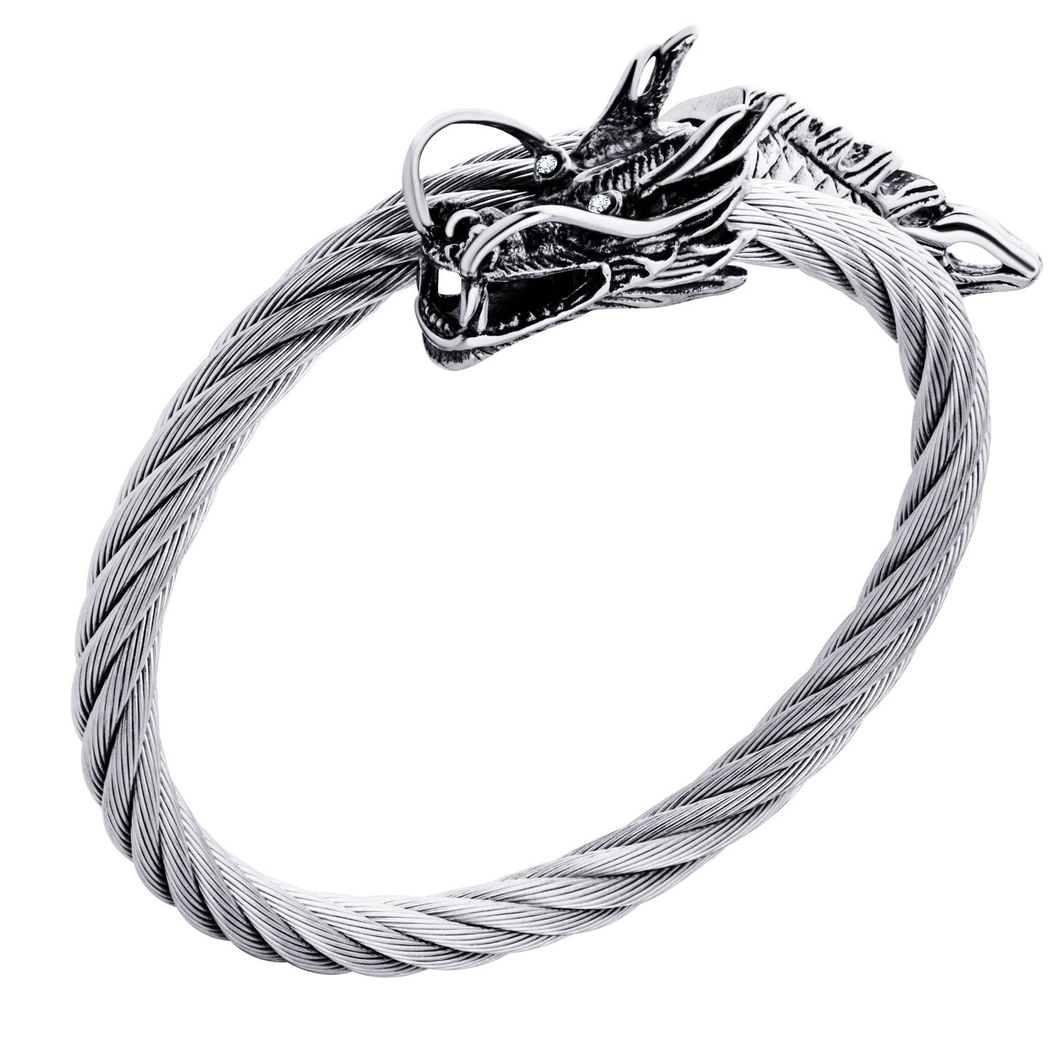 กำไลข้อมือดีไซน์เท่ ลายหัวมังกร ขนาดประมาณ 15 มม.