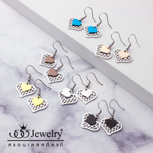 ต่างหูแฟชั่น สแตนเลสสตีลแท้ ดีไซน์สวย รูป หัวใจ และ ไม้กางเขน รุ่น MNC-ER139