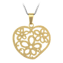 จี้พร้อมสร้อย สไตล์หวาน ดีไซน์เรียบเก๋ฉลุรูปหัวใจและดอกไม้ ขนาดจี้ประมาณ 29 x 33 มม. จัดส่งพร้อมสร้อยลายโซ่ความยาวประมาณ 45-50 ซม.(ไม่สามารถเลือกความยาวสร้อยได้ค่ะ) ดีไซน์สวยงาม เข้าได้กับหลากหลายสไตล์การแต่งกาย สวมใส่ง่าย ผลิตจากวัสดุคุณภาพดี สีสวยทนไม่ลอกดำง่าย เนื้องานสแตนเลสสตีลแท้ Stainless Steel เกรด 316L ซึ่งเป็นเกรดเดียวกับเครื่องมือแพทย์ จึงไม่ก่อให้เกิดการระคายเคืองต่อผิวหนังค่ะ