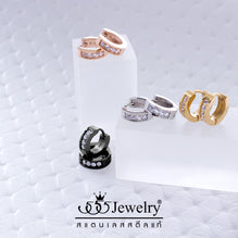 ต่างหูห่วงสแตนเลส ตกแต่งด้วยเพชร CZ ดีไซน์สวย คลาสสิค - รุ่น MNC-ER524 - ต่างหูแฟชั่น ต่างหูสวยๆ